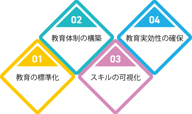 部署や担当者によってばらついているルールや教育方法を統一し、組織全体で一貫したスキル育成を行うことで、教育の質を向上させ、人・場所を問わず学んでも同じレベルの知識・スキルが得られる環境を整えることができます。特に従業員数の多い企業や、人材の流動性が高い組織では重要な取り組みです。